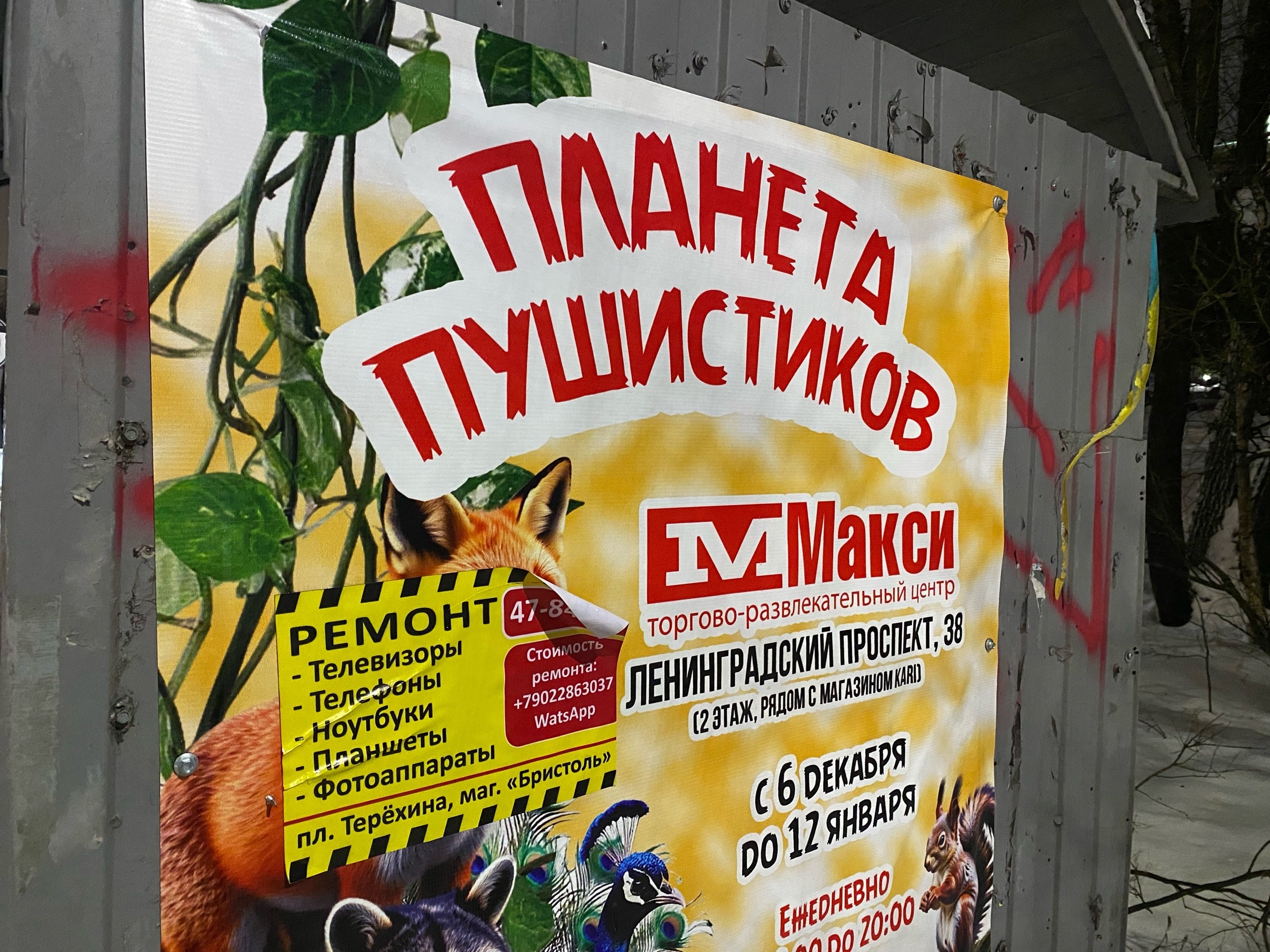 Видя наплевательское отношение властей и горожан к павильонам ожидания, аналогичное поведение демонстрируют и заезжие гастролеры. Например, афиша выставки животных прикреплена к остановке на улице Советской саморезами. То есть расклейщики объявлений взяли с собой даже не клей или скотч, а шуруповерт. В итоге острый наконечник самореза торчит снаружи и представляет опасность для тех, кто захочет облокотиться на павильон. Хотя, видя состояние остановки, вряд ли такие найдутся.
